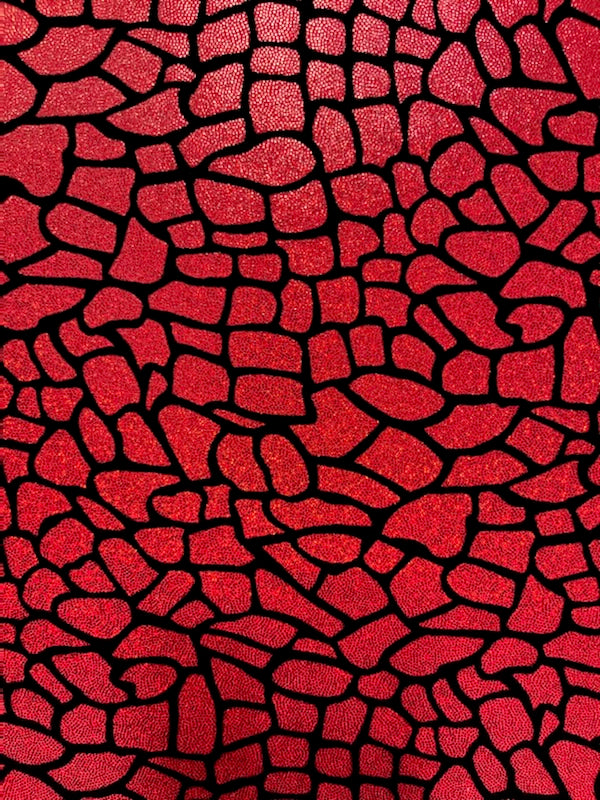 Black velvet rocky pattern over red foiled nylon lycra