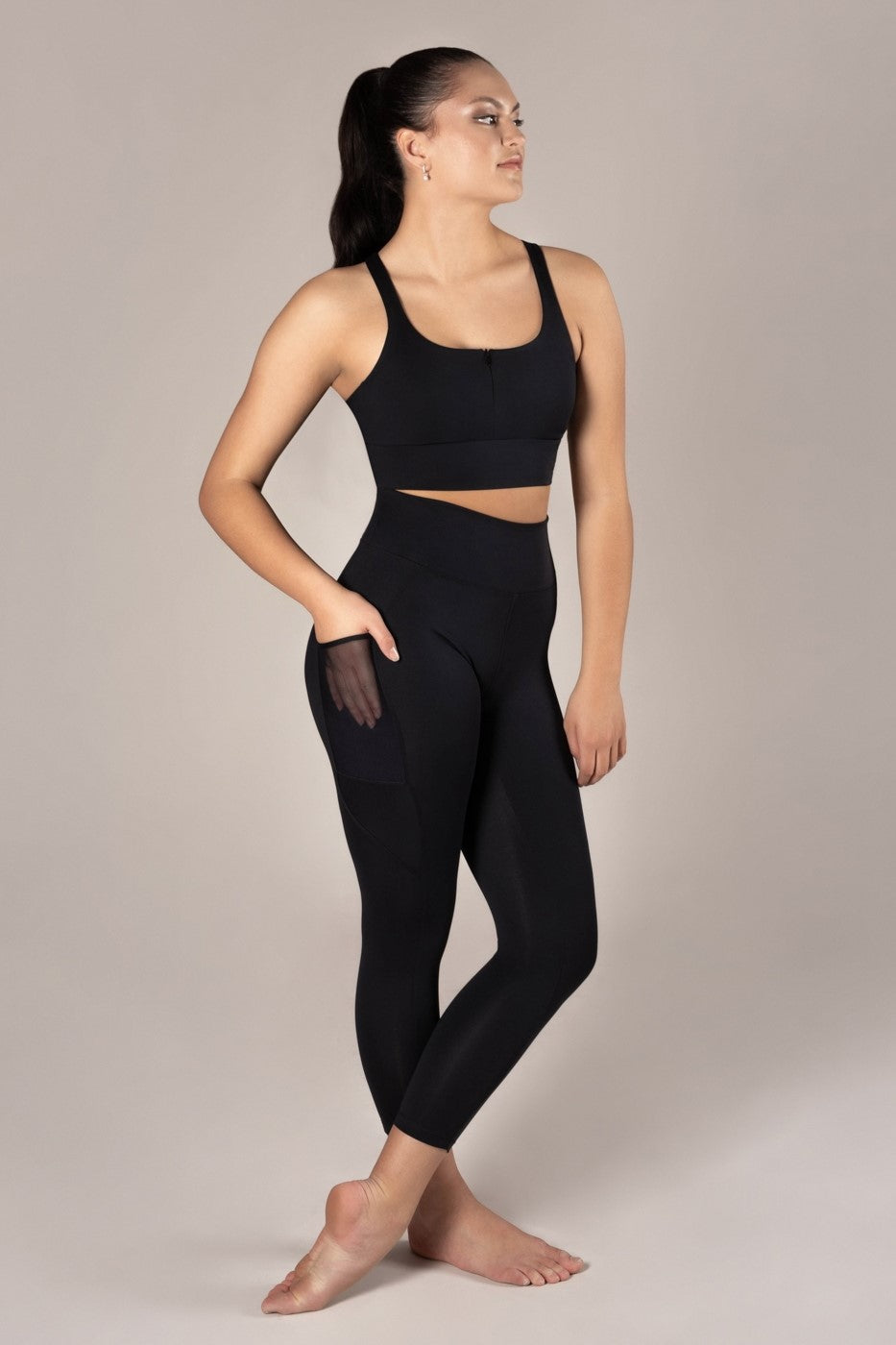 Make an impact in Sabre Leggings, cut to ankle biter length. Why you’ll adore them: Sculpted design lines and side panelling lend a flattering fit. Mesh side pockets let you store your phone or music device as you workout. A generous waistband ensures maximum comfort. Enjoy the luxuriously soft feel of ProForm™ EcoLuxe fabric. And feel great knowing they’re sustainably crafted using recycled fabric.
