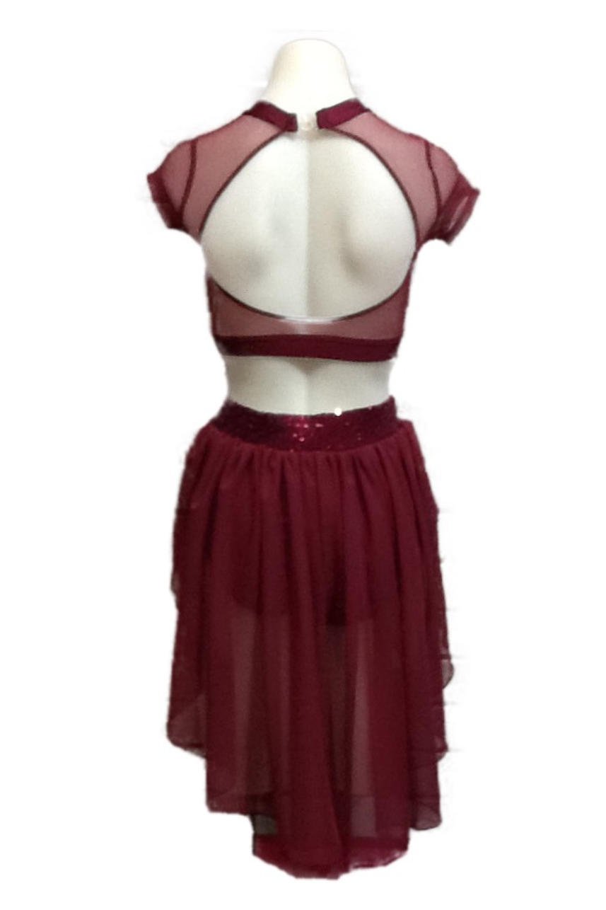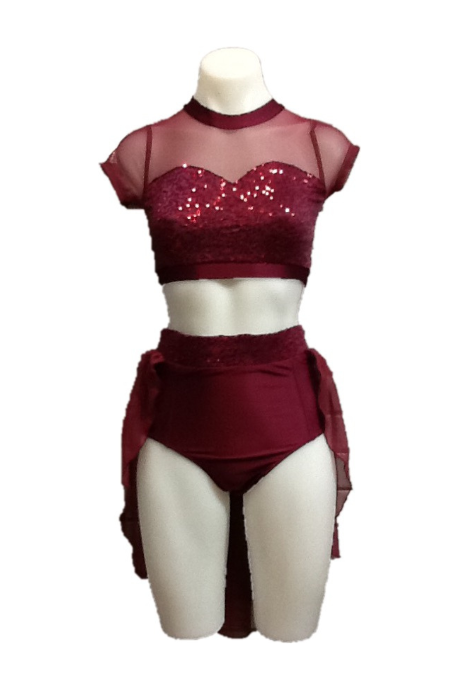 Bottoms are a nylon high waisted knicker with sequin band with a stretch mesh skirt.