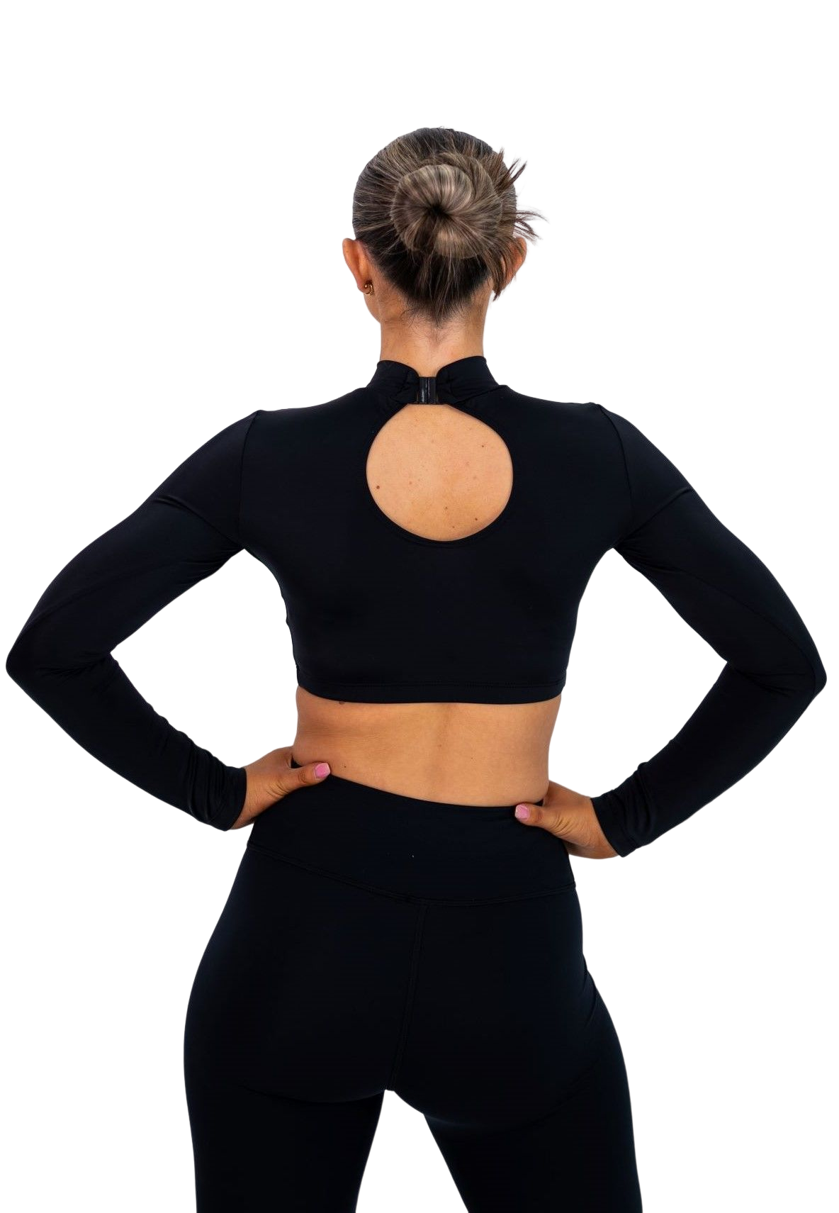 Keep yourself warm in this gorgeous long sleeve crop! But don't worry - it's made from a special fast-drying and breathable fabric that won't make you too hot while you're exercising! The flattering high-neck and keyhole back will set you apart from other long-sleeved tops.