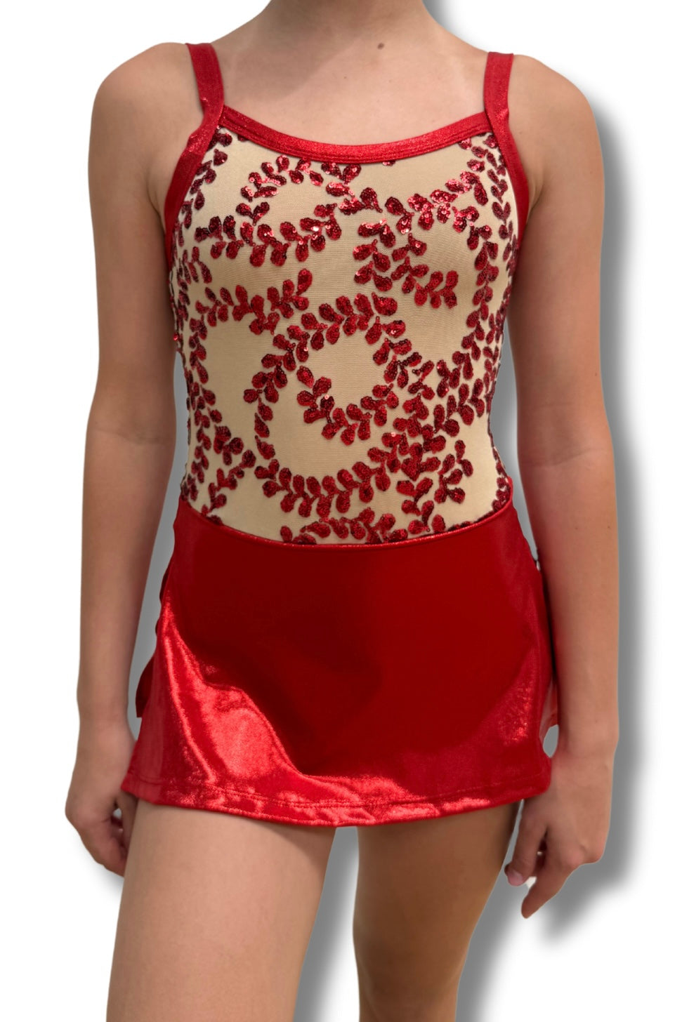 This costume features wide strap bind as straps, for extra support and comfort, it has an A-line skirt with splits which is built into the leotard. We have created this design in two colours, the Red sequin with Red fog foil trim, or the Black sequin with the Black fog foil trim. Costumes are lined to create extra support and give you that quality feel.
