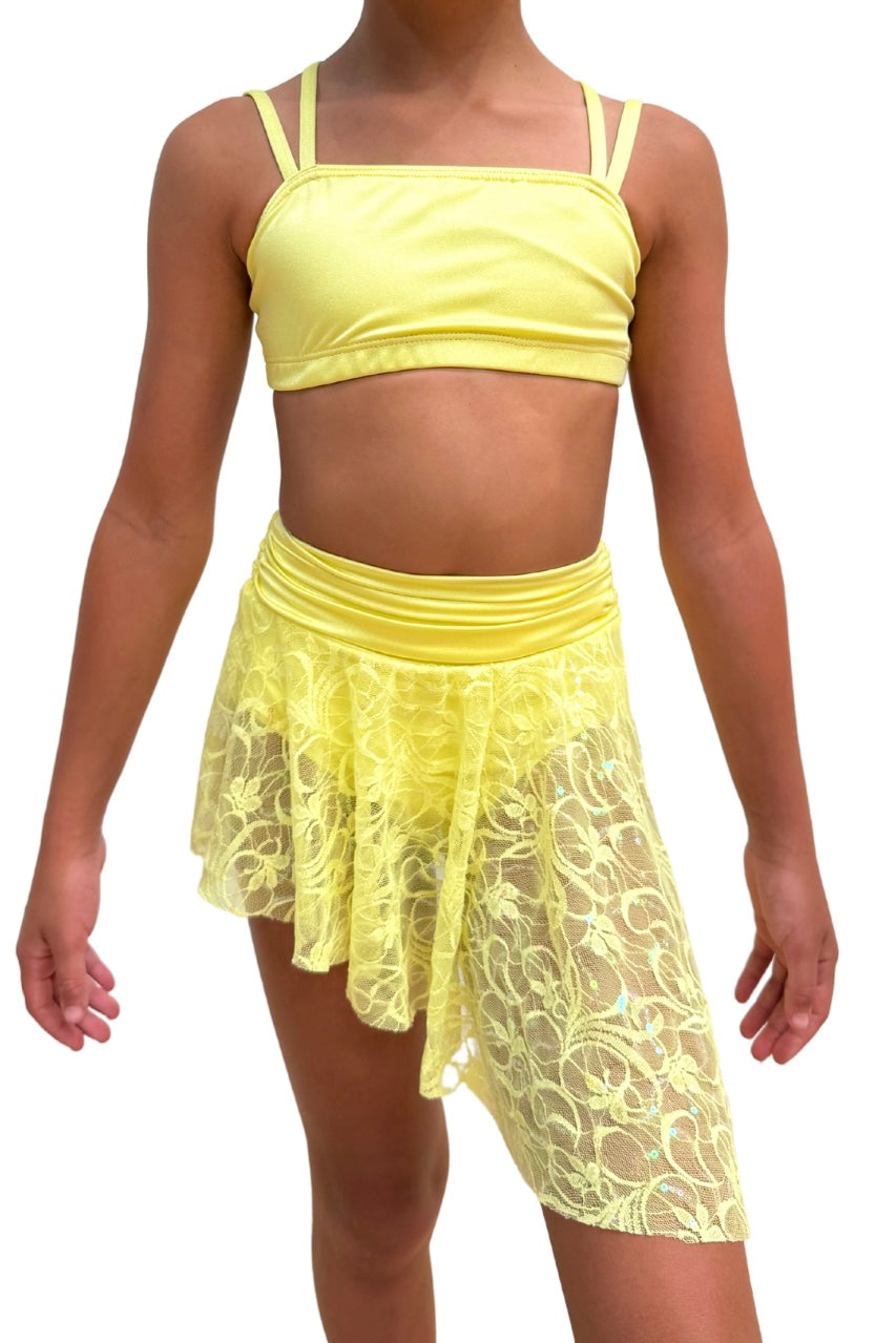This beautiful set is made from shiny nylon Lycra and a beautiful lace as the skirt. If the colour you are wanting is not online, please call the shop for more information (08) 9300 0740.